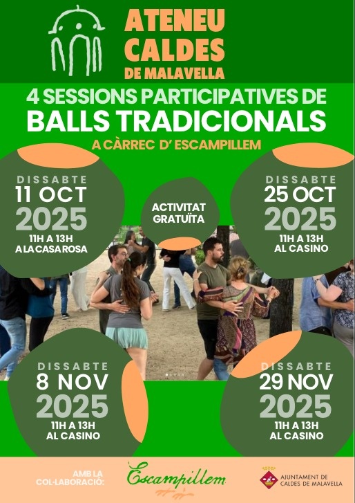 Un seguit de quatre tallers de balls tradicionals oberts i gratuït a Caldes de Malavella (la Selva). Els dissabtes 11 i 25 d'octubre i 8 i 29 de novembre. Tothom hi és convidat! Organitza: Ateneu de Caldes.