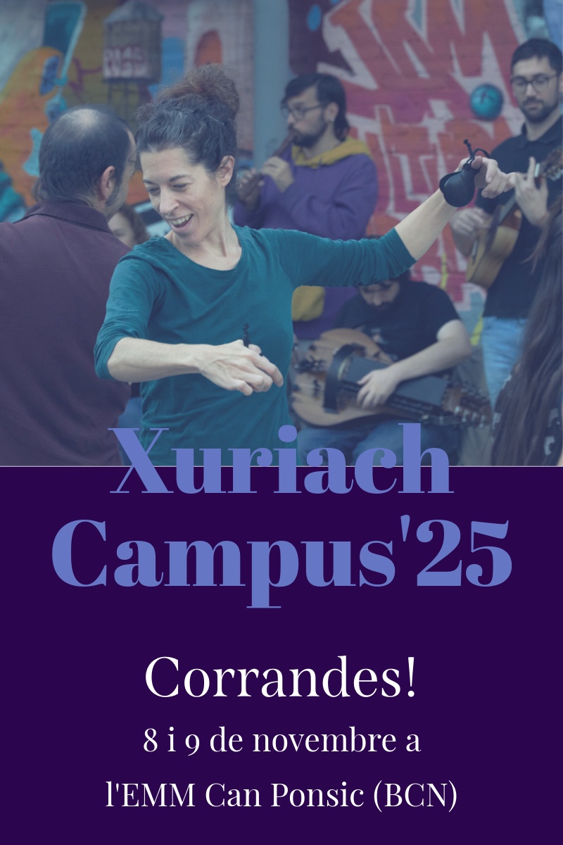Xuriach, companyia de música i dansa antiga i tradicional, ja fa deu anys que organitzem campus temàtics de ball i música. Enguany, per a celebrar-ho us presentem "Corrandes!", dedicat a la cançó i les maneres de cantar per acompanyar el ball, i una festa final molt especial amb la col·laboració de diverses corals.