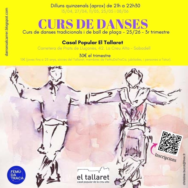 🎫 30€ tot el trimestre (15€ joves fins a 25 anys, sòcies del Tallaret, jubilades, persones a l’atur, membres de la FeMuDaTraCa)
