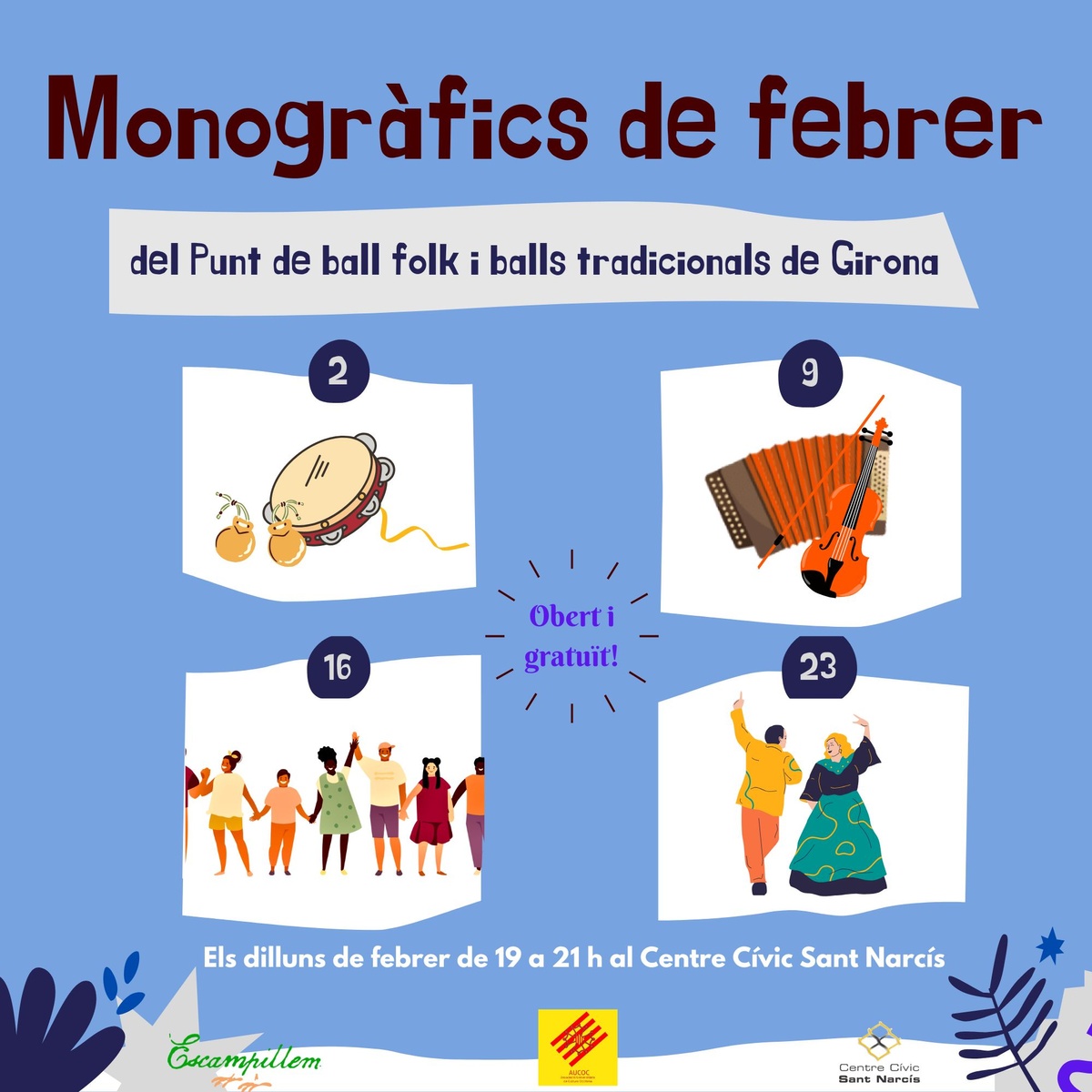 El mes de febrer, al Punt de Ball Folk i Balls Tradicionals de Girona s'hi organitzaran un seguit de monogràfics, dies dedicats a un gènere, estil, forma o territori; són els MONOGRÀFICS DE FEBRER els dies