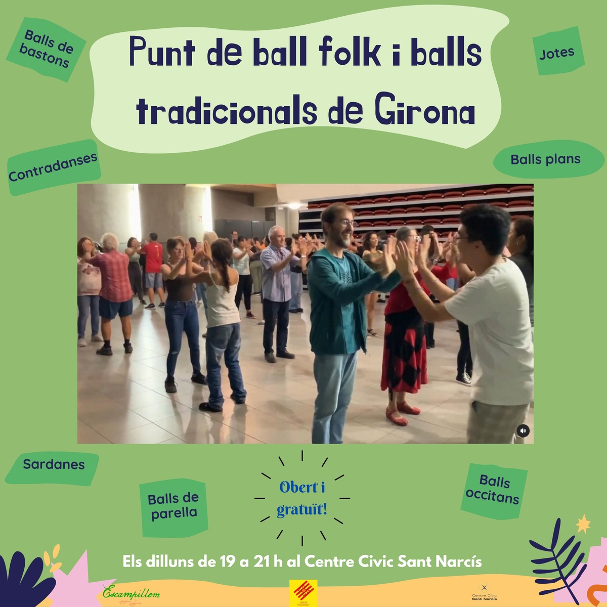 El  Punt de Ball Folk i Balls Tradicionals de Girona és un espai de trobada obert i gratuït de formació i divulgació del ball i la música folk i tradicionals.