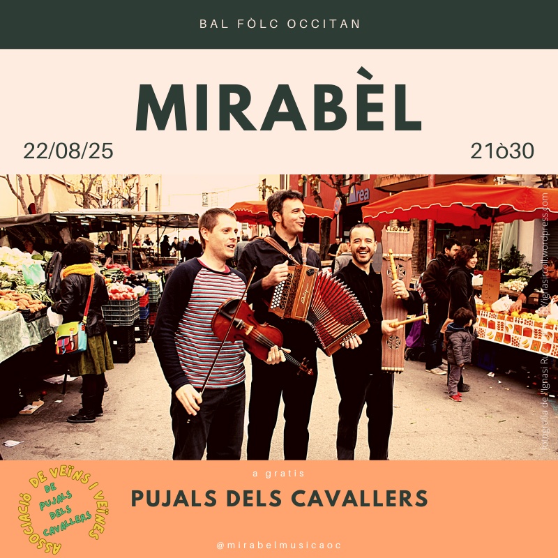 📆 22/08/25⏱ 21ò30 #BalÒc amb Mirabèl 📮 Plaça del poble (Pujals dels Cavallers)🎫 a gratis
