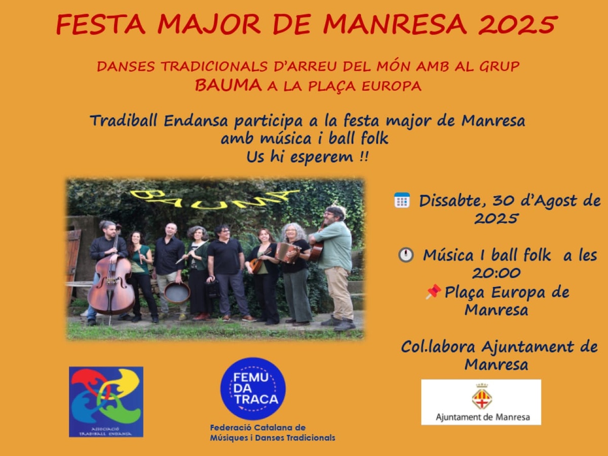 Tradiball Endansa participa a la Festa Major de Manresa amb Música i ball folk.