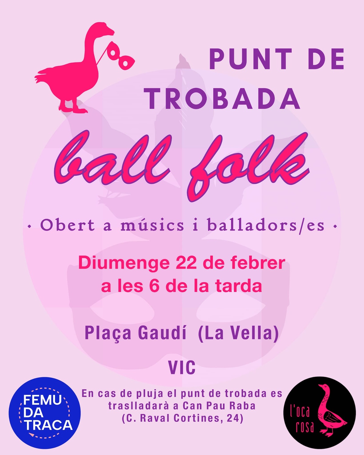 Diumenge 22 de febrer, com cada últim diumenge de mes durant el curs, farem ballada de Punt de Trobada, a la Plaça de la Vella de Vic (també dita pl. Gaudí), a les 6 de la tarda.