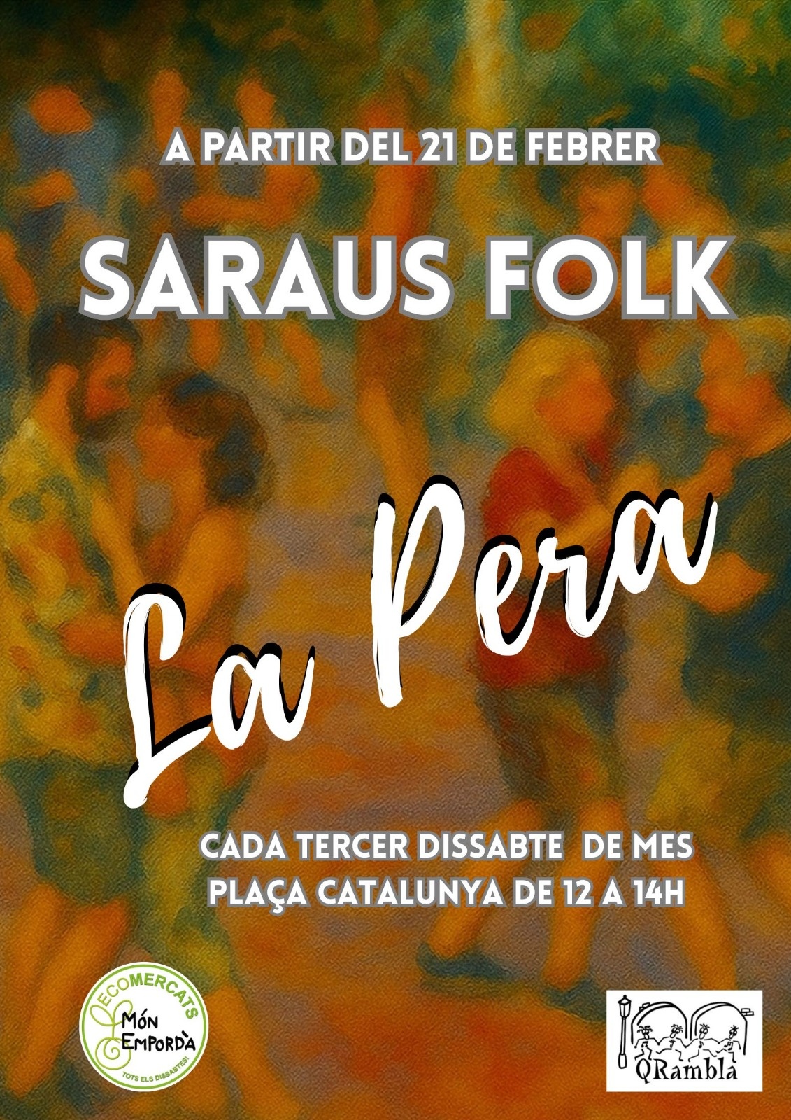 La Qrambla, en col·laboració amb l'associació Món Empordà, dinamitzarem amb un Sarau Folk cada tercer dissabte de mes el Mercat de Món Empordà que es fa a La Pera.
