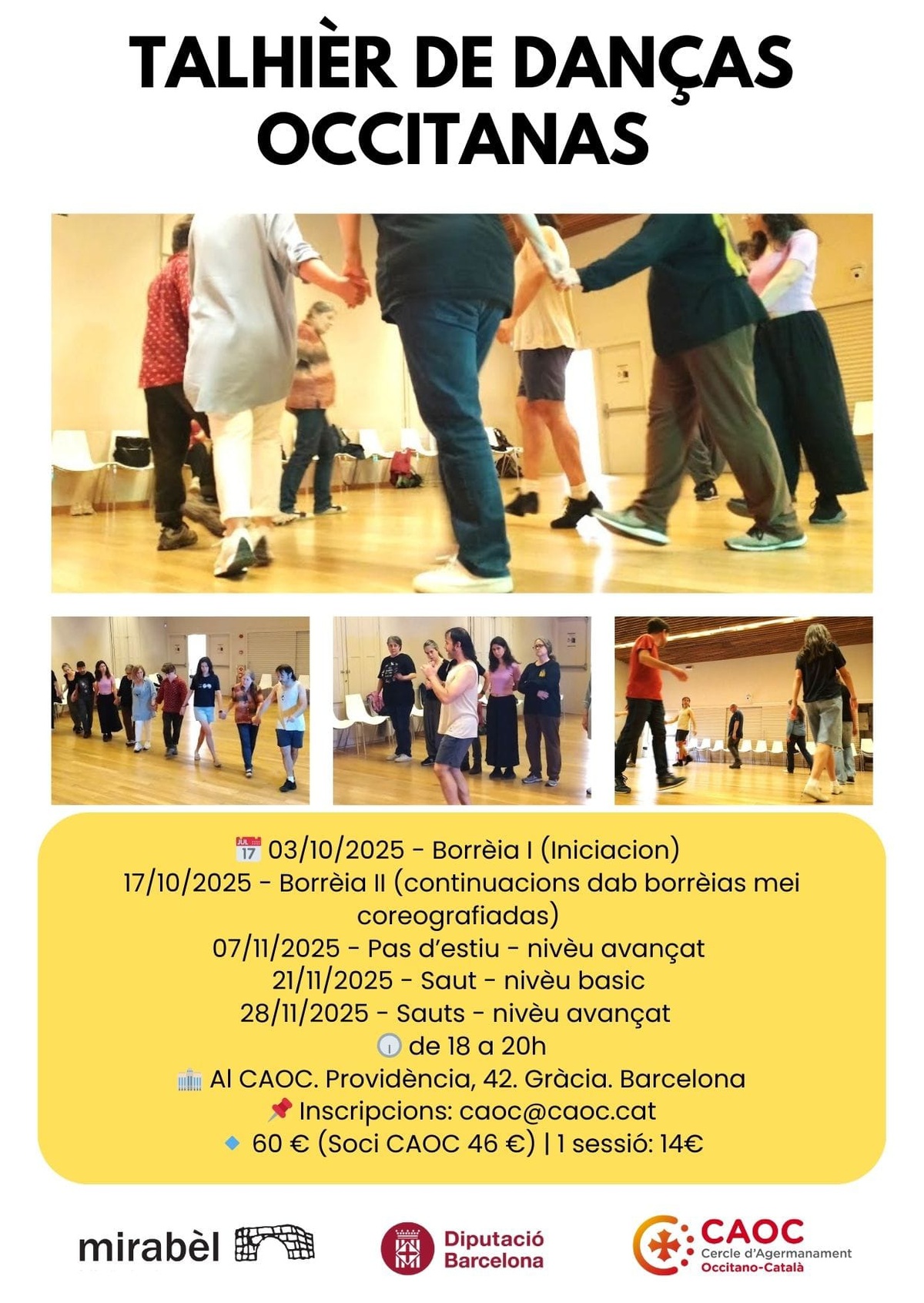 Lo CAOC e Mirabèl qu'organitzan un talhièr de danças occitanas (en occitan!) tà aprener quauques danças tipicas e vivantas d’Occitània. Lo professor que será lo Joan Codina Vila.